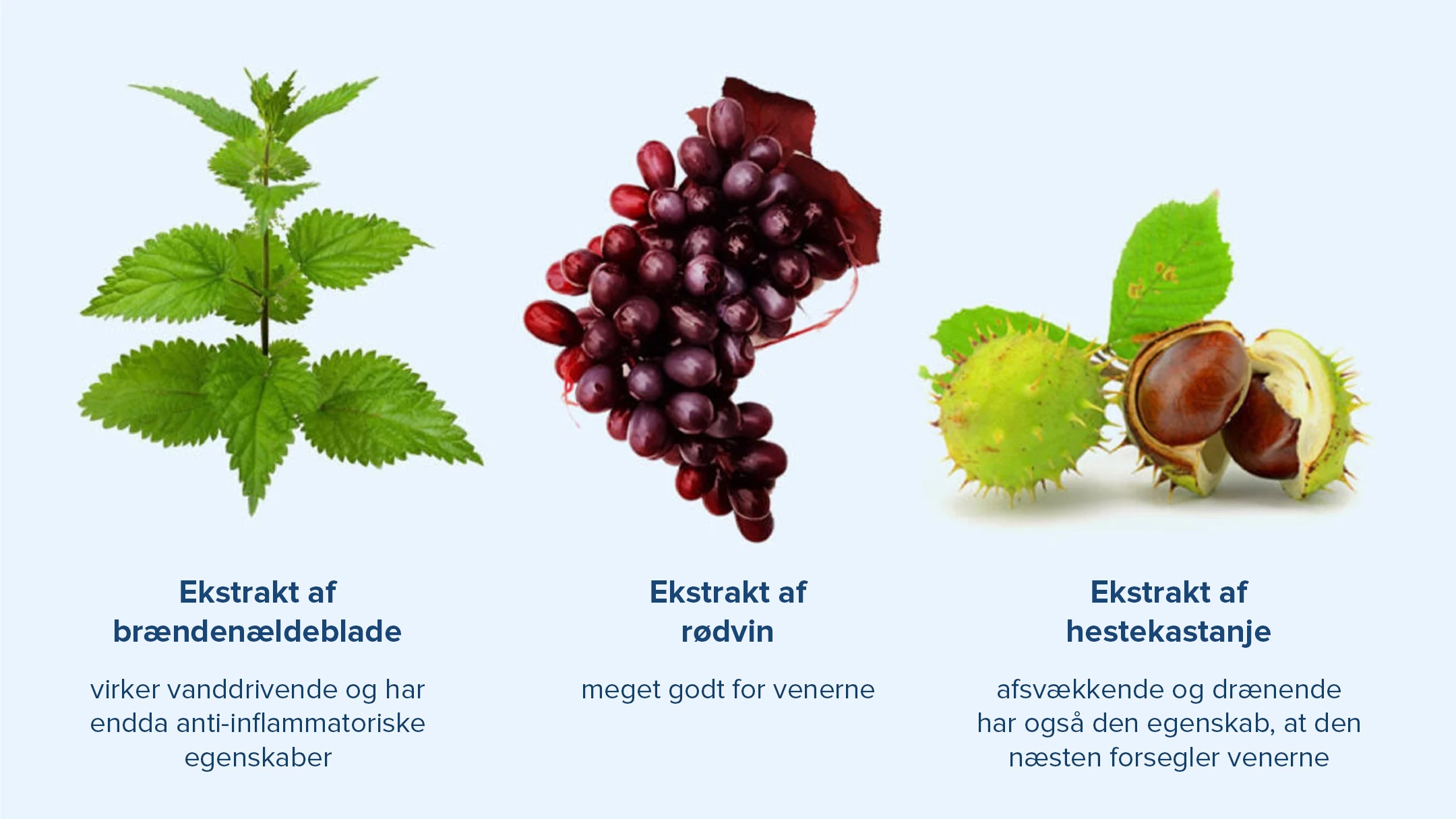 Det skyldes, at hestekastanje-ekstrakt og ekstrakt fra røde vinblade styrker vener, bindevæv og blodkar.