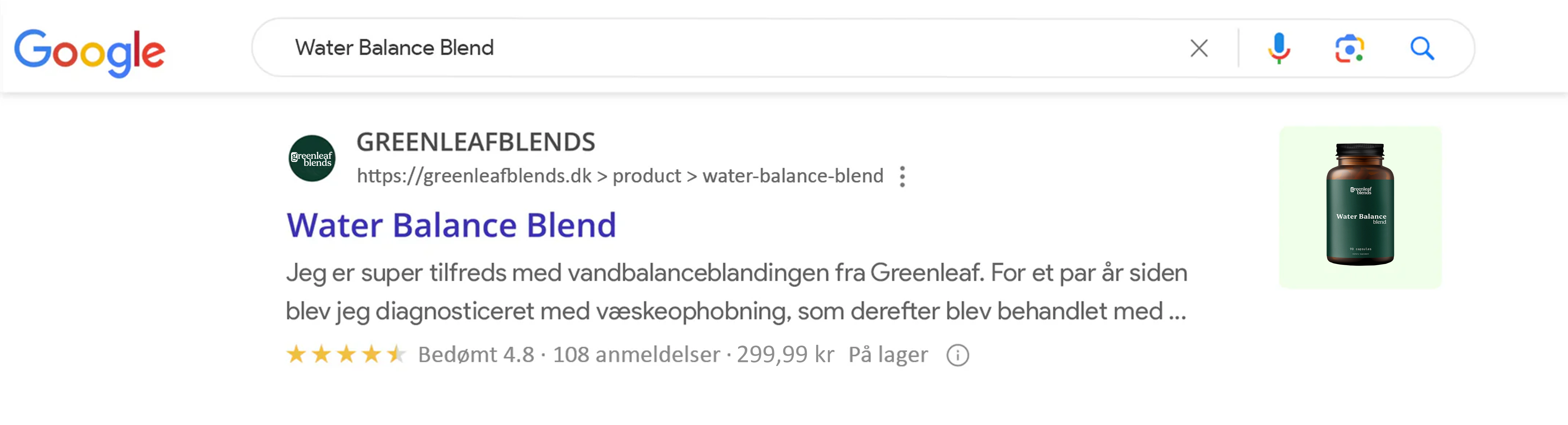 - Greenleaf Blends tilbyder produktet til en absolut fair pris. Andre kosttilskud til væskeophobning, som er af ringere kvalitet, koster nogle gange 700-900 kr. om måneden. Water Balance blend fås for 259 kr. måned.