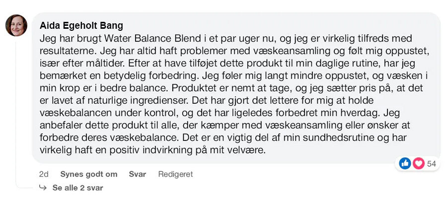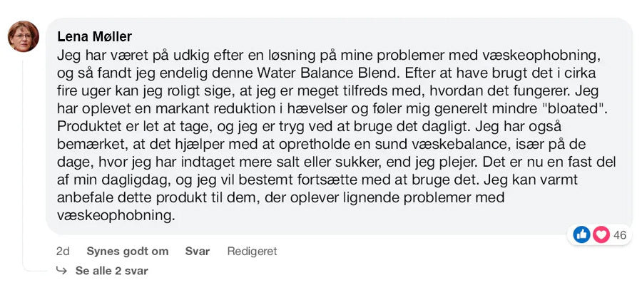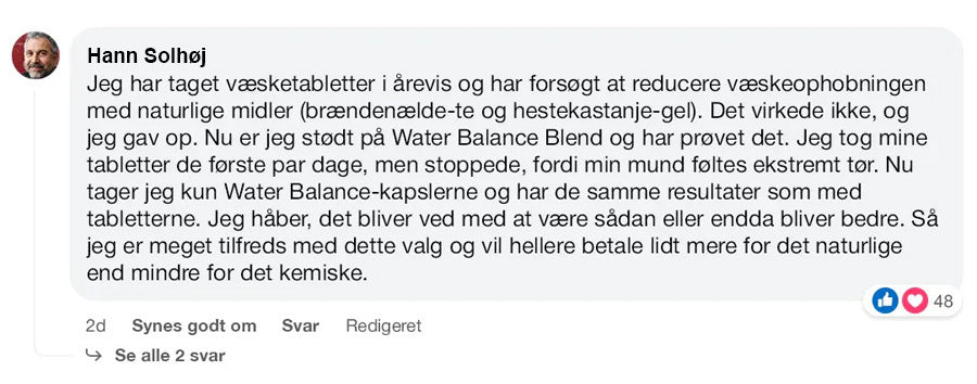 Forresten: Producenten anbefaler, at man drikker mindst 2 liter vand om dagen, mens man bruger Water Balance. Ideen er ikke at dehydrere dig selv!