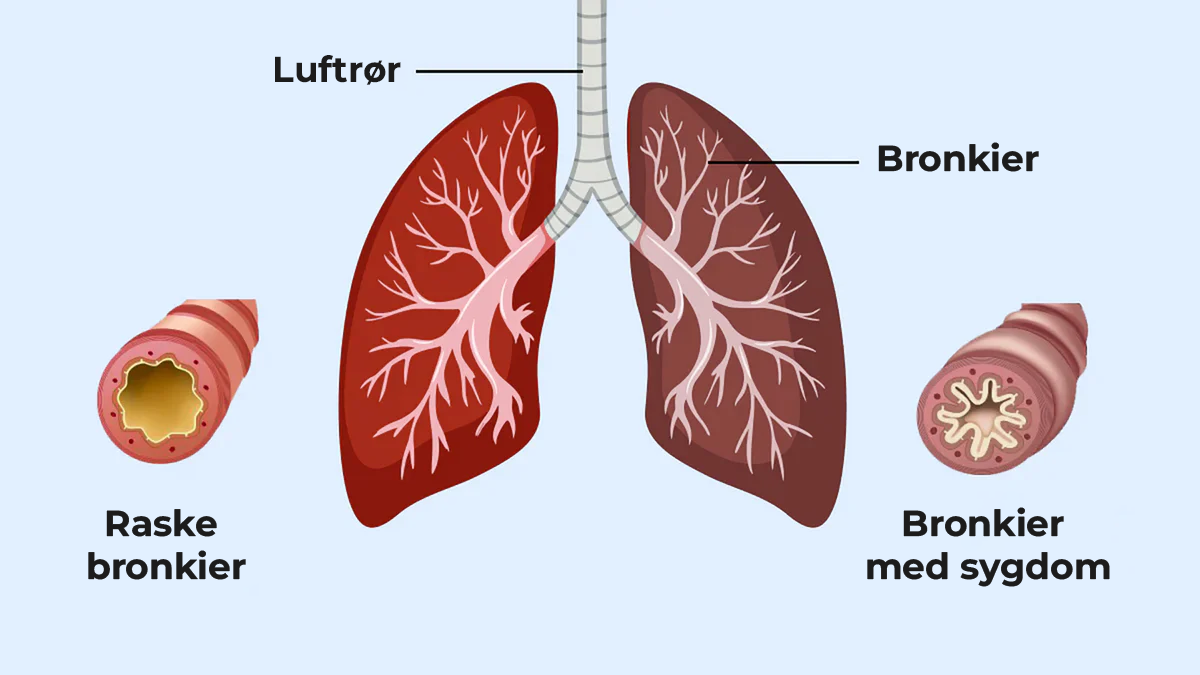 Ved bronkitis er bronkierne betændte, og der er brug for meget mere slim for at beskytte dem.