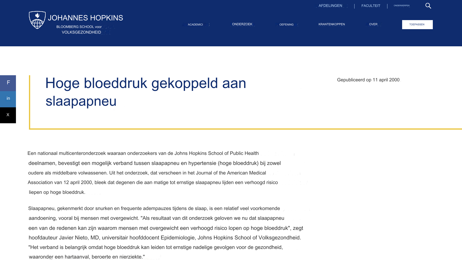 Volgens onderzoekers van de Johns Hopkins Universiteit, is beperkte ademhaling ook gekoppeld aan hoge bloeddruk en zelfs hartfalen.