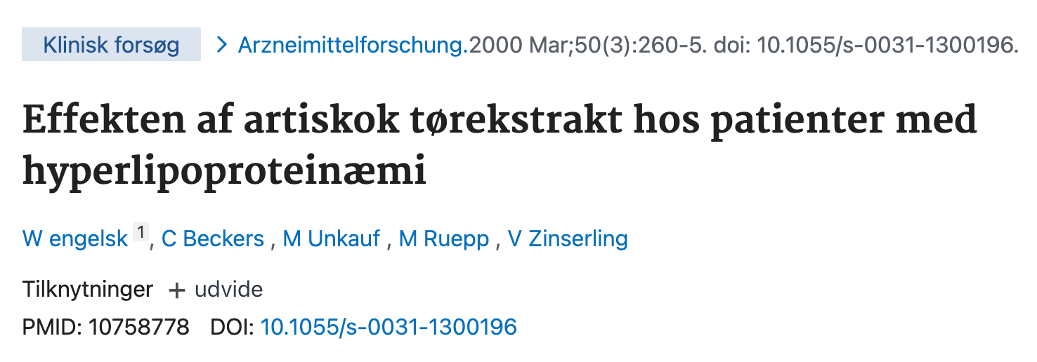 3. Effectiviteit van artisjokdroogextract bij patiënten met hyperlipoproteïnemie (https://pubmed.ncbi.nlm.nih.gov/18424099/)