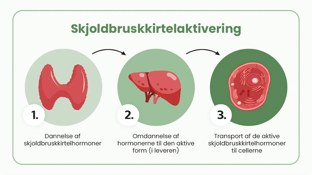 Skjoldbruskkirtelhormonerne skal omdannes til en aktiv form og derefter transporteres ind i cellerne.