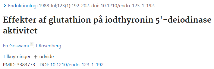Effekter af glutathion på jodthyronin 5'-deiodinase-aktivitet: https://pubmed.ncbi.nlm.nih.gov/3383773/
