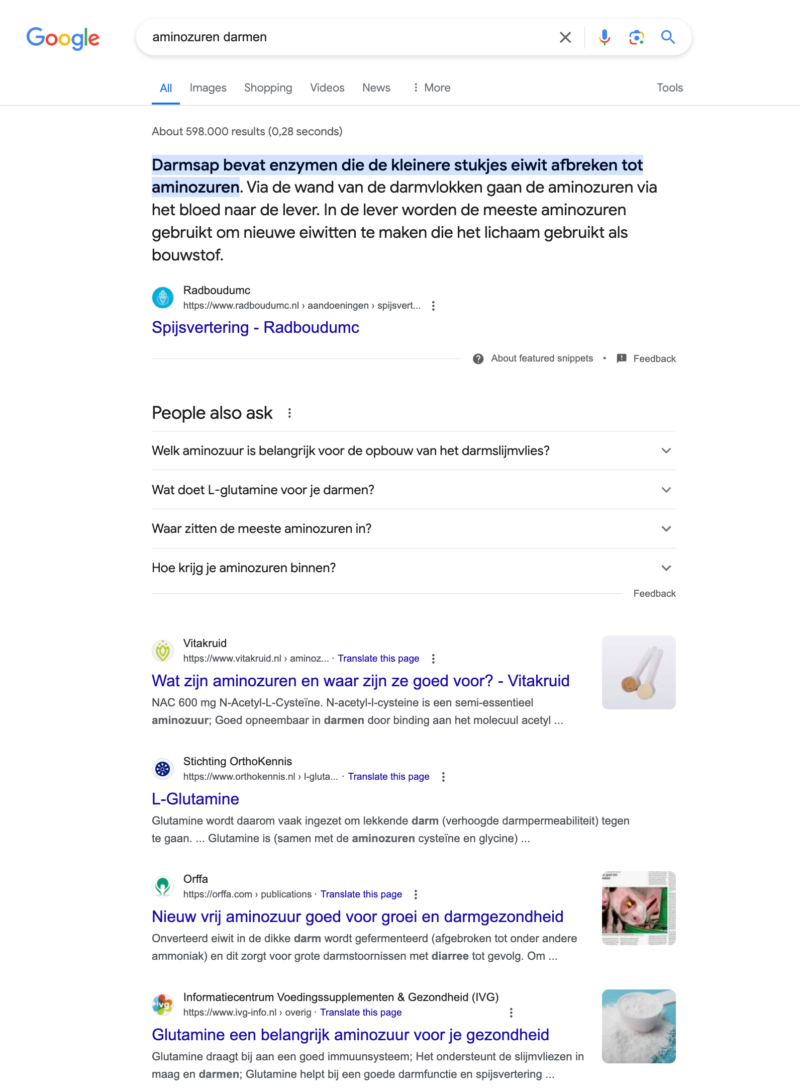 Na bijna een maand realiseerde ik me dat mijn verbeterde energieniveau mogelijk te maken had met een betere spijsvertering. Een snelle online zoektocht liet zien dat aminozuren de gezondheid van de darmen kunnen ondersteunen.