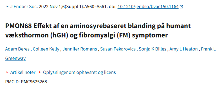 PMON68 – Effekt af en aminosyrebaseret blanding på humant væksthormon (hGH) og fibromyalgi symptomer (FM)