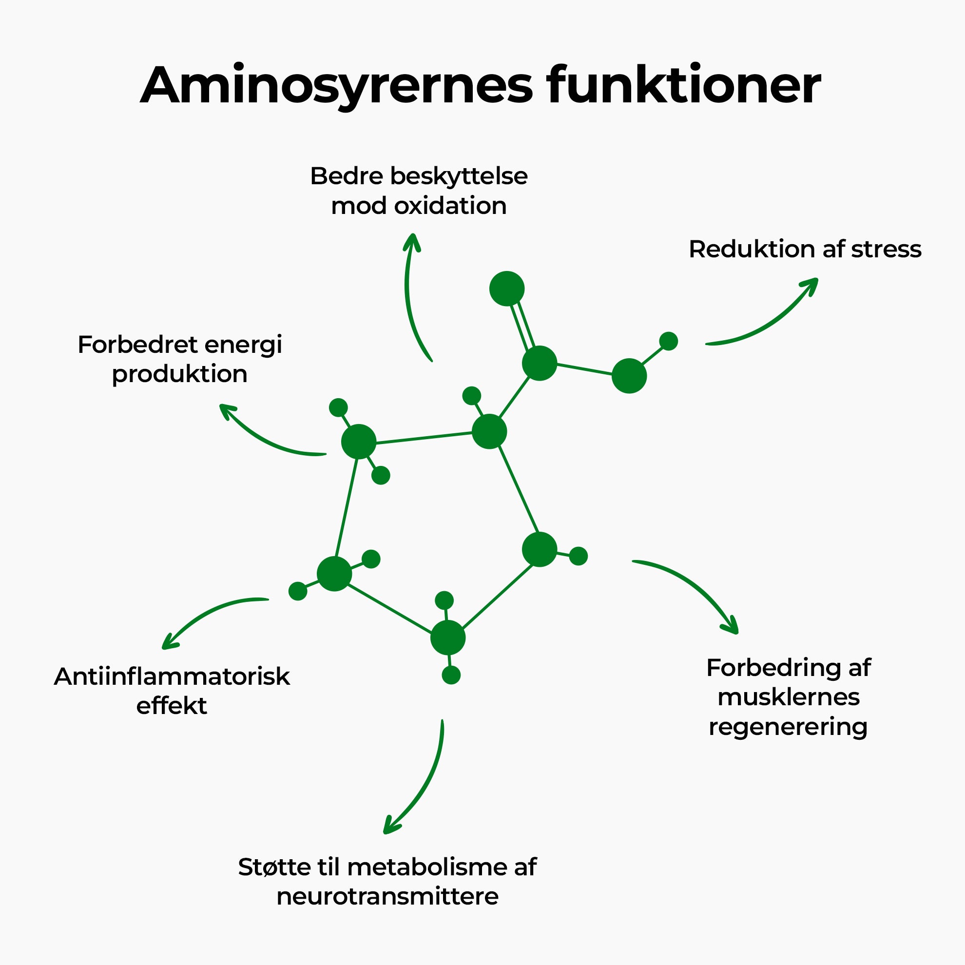 For muskler, neurotransmittere, enzymer og immunceller består i vid udstrækning af aminosyrer – kroppens grundlæggende byggesten.