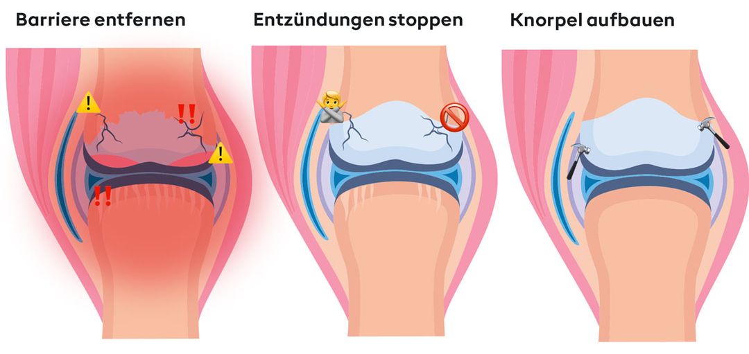 Maar alleen als de ontsteking wordt gestopt en de barrières worden verbroken, kan het kraakbeen worden herbouwd. Dit is de sleutel op lange termijn tot gezonde, veerkrachtige gewrichten.